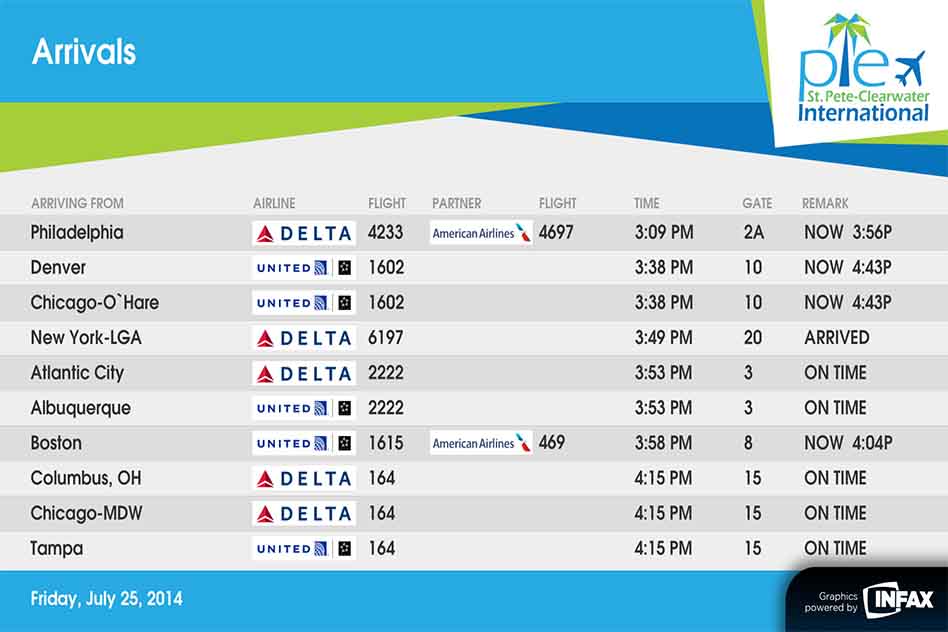 The Aero360 Suite allows airport authorities to easily manage and display real-time flight information, baggage information and gate information to airport passengers. The solution can integrate with any airline interface or flight data source to update expected departure times and accept changes made by authorized staff using the system’s web-based interface.